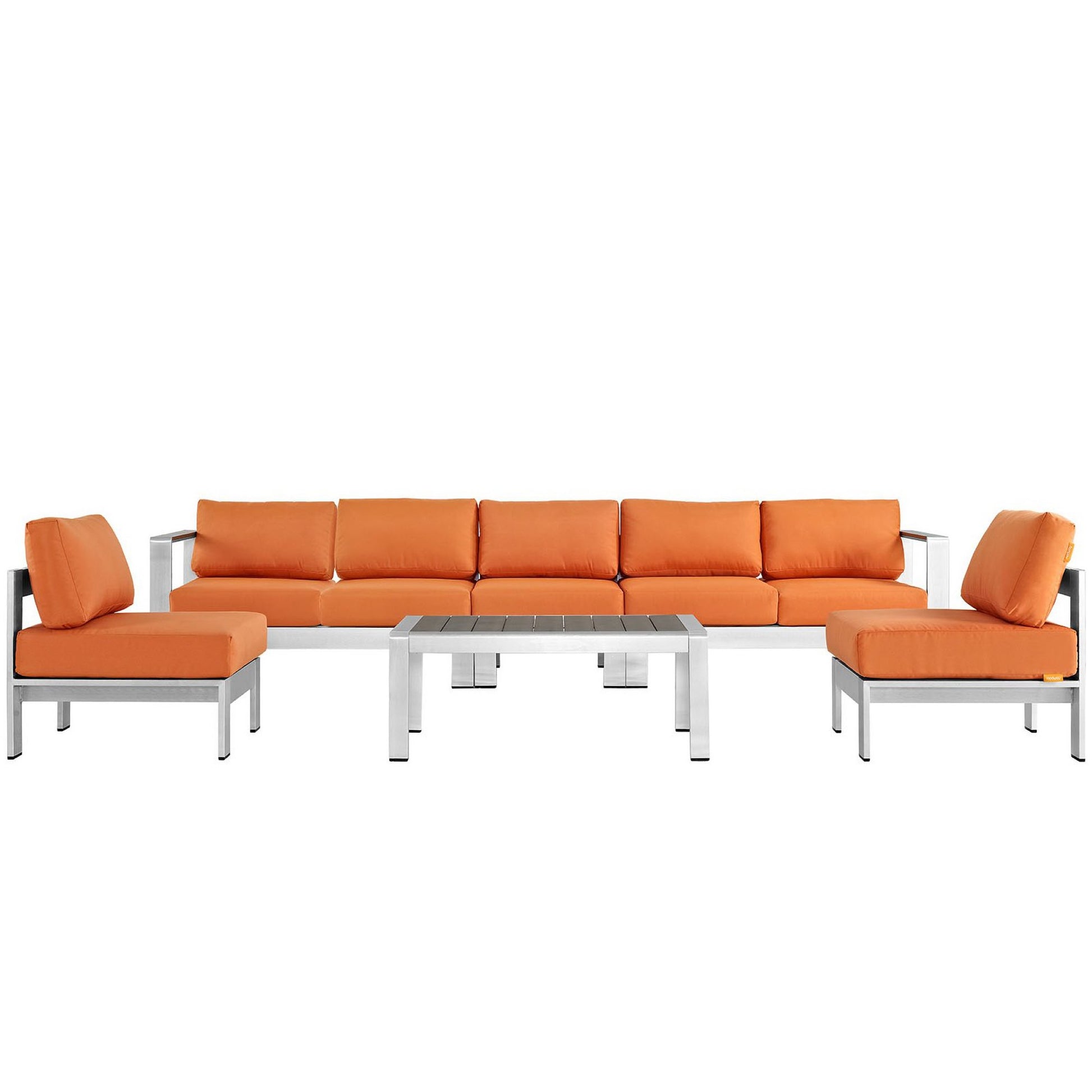 Shore 6 Piece Outdoor Patio Aluminum Sectional Sofa Set in Silver Orange by Modway (2565)