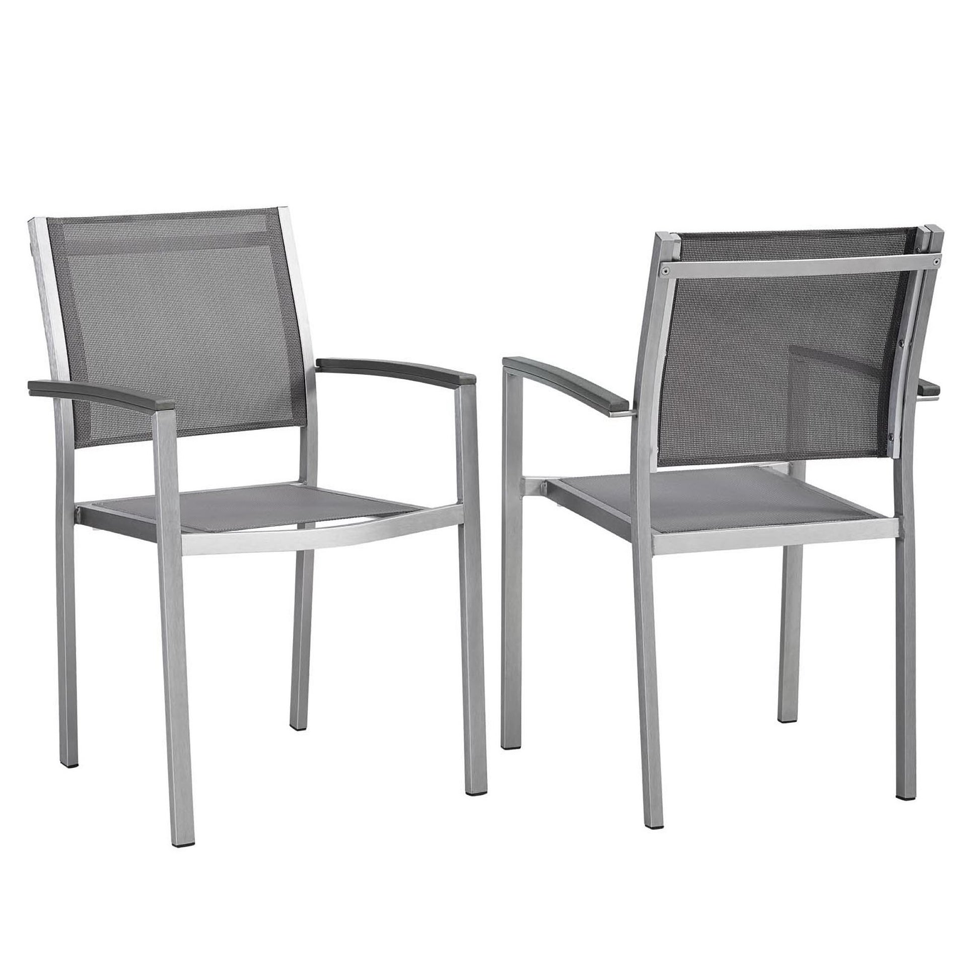 Enjoy your patio or backyard leisure time with the strong and durable Shore Outdoor Patio Dining Arm Chair in Mesh. Made with an anodized brushed aluminum frame and breathable Textilene mesh, Shore Patio Dining Chair is a breeze to assemble and comes with non-marking black plastic foot caps under the legs. Chic and minimalist, the Shore Outdoor Dining Arm Chair complements your casual gatherings with a look and functionality you can rely on.