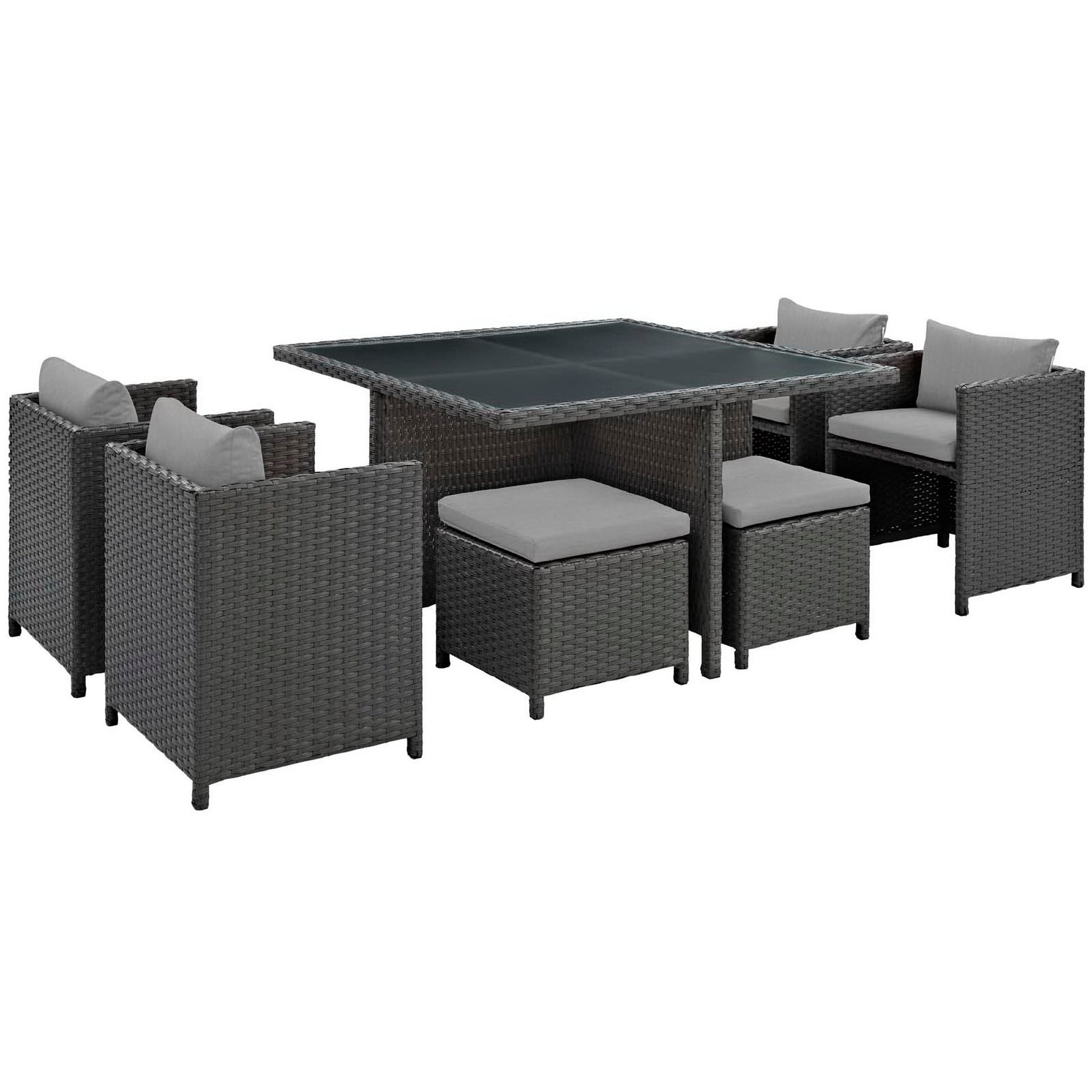 - Overall Product Dimensions: 89"L x 101"W x 30.5"HTable Dimensions: 52.5"L x 52.5"W x 29.5"HOttoman Dimensions: 19"L x 19"W x 14.5"HChair Dimensions: 22"L x 23.5"W x 26.5"H