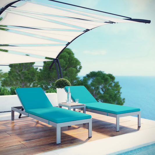 Shore Aluminum 3-Piece Chaise Lounge Set - Silver Turquoise by Modway