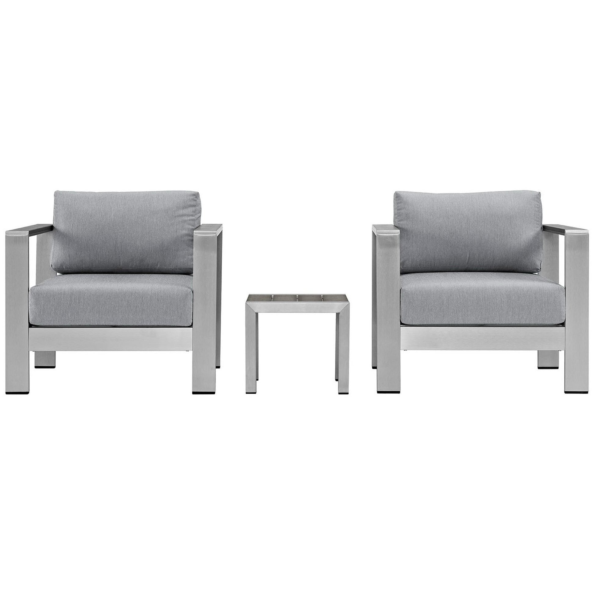 Shore Aluminum 3-Piece Conversation Set - Silver Gray by Modway
