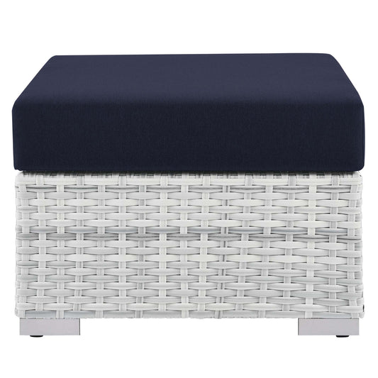 Convene Outdoor Patio Wicker Rattan Square Ottoman in Light Gray Navy by Modway