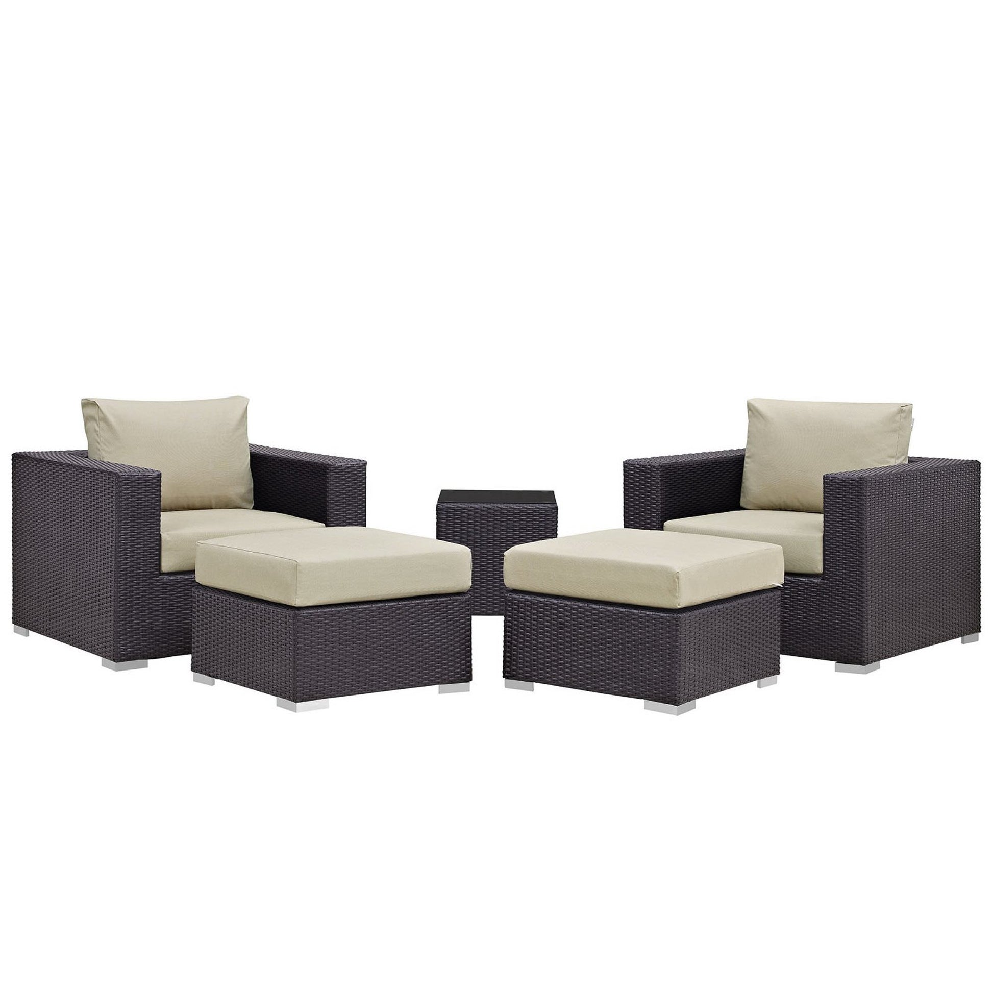 Color/Finish: Espresso Brown Weave with Beige Cushions