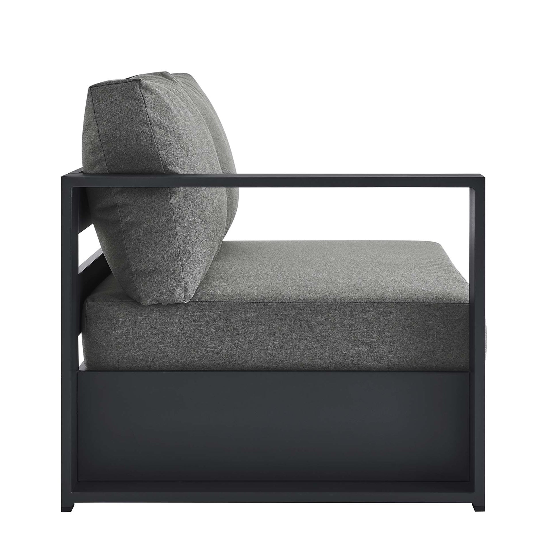 Enliven your alfresco spaces with the Tahoe Left-Facing Outdoor Patio Loveseat. This modern outdoor loveseat is constructed with well-crafted, durable powder-coated aluminum, dispensing contemporary elegance in your outdoor lounge spaces. Its dense foam padding ensures sustained comfort, making it ideal for poolside lounging or as cozy porch seating, complete with a UV and water-resistant fabric-covered seat and backrest pillows. The cushion covers are removable for easy machine washing. Part of a modular outdoor furniture collection, this left-facing patio couch features a sturdy armrest on one side and an open end on the other, making it ideal for pairing with its matching sectional piece or versatile positioning with other outdoor furniture. The entire Tahoe aluminum patio furniture set features non-marking foot glides to protect your deck or patio floor and comes with easy-to-follow assembly instructions. Weight Capacity: 661 lbs.