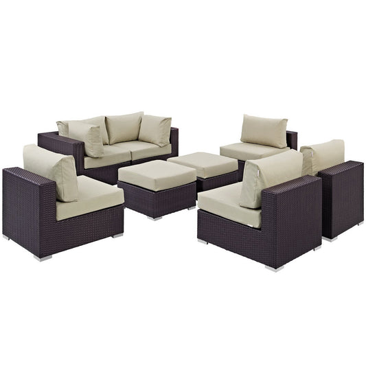 Convene 8 Piece Outdoor Patio Sectional Set in Espresso Beige by Modway (EEI-2204)