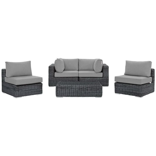 Summon 5 Piece Outdoor Patio Sunbrella Sectional Set in Canvas Gray by Modway (1904)