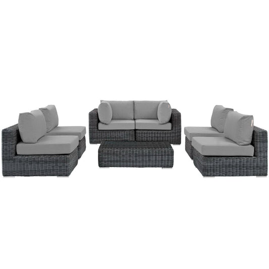 Summon 7 Piece Outdoor Patio Sunbrella Sectional Set in Canvas Gray by Modway (1897)