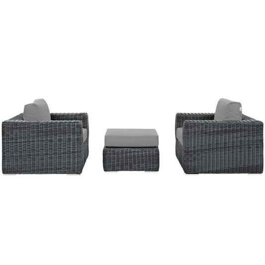 Summon 3 Piece Outdoor Patio Sunbrella Sectional Set in Canvas Gray by Modway (1905)