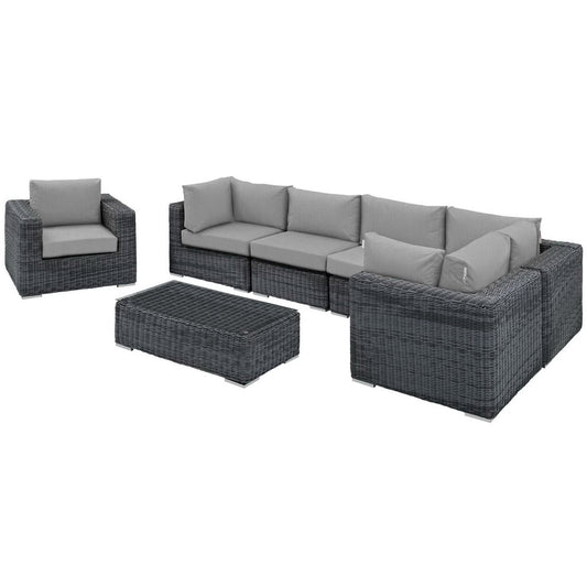 Summon 7 Piece Outdoor Patio Sunbrella Sectional Set in Canvas Gray by Modway (1892)