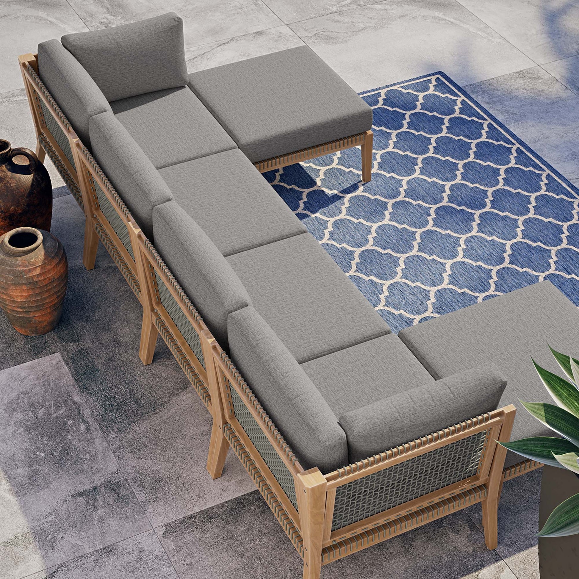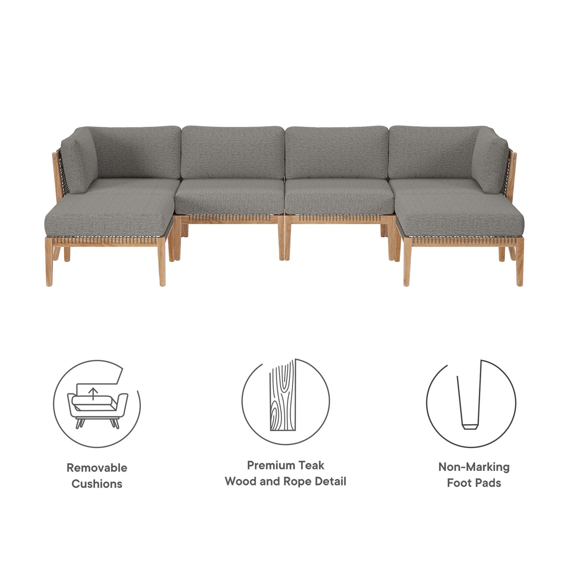 Clearwater 6-Piece Outdoor Patio Teak Wood Sectional Sofa in Gray Graphite by Modway (6122)