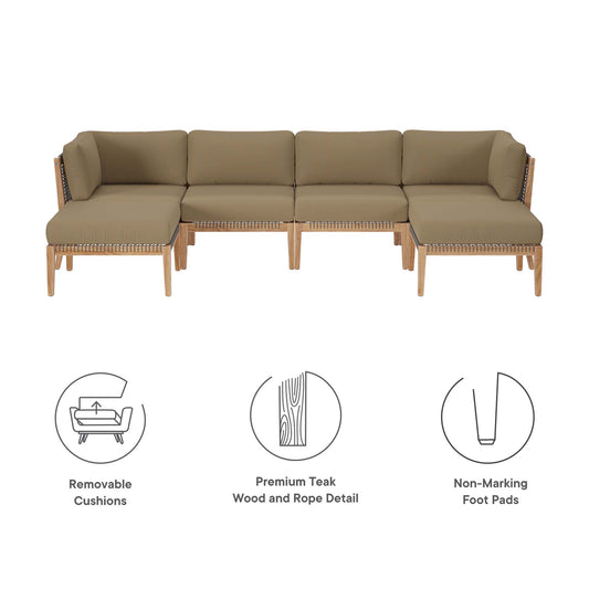 Clearwater 6-Piece Outdoor Patio Teak Wood Sectional Sofa in Gray Light Brown by Modway (6122)