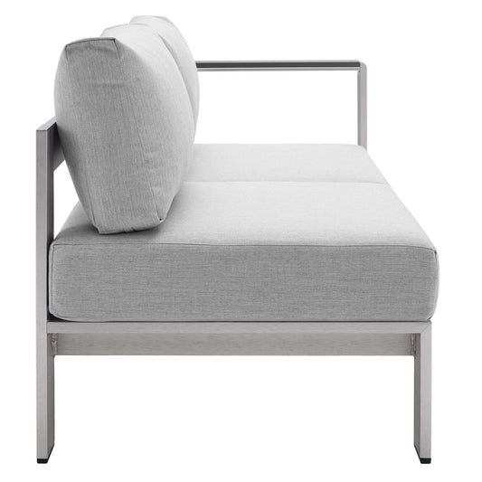 Shore Sunbrella Fabric Aluminum Outdoor Patio Left-Arm Loveseat in Silver Gray by Modway (4223)