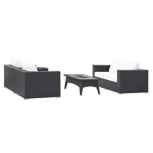 Convene 4 Piece Set Outdoor Patio with Fire Pit in Espresso White by Modway (EEI-3725)